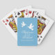 Enkelt två vita fredsduvor med två blå rosett band bröllop-spelkort. Anpassa med bröllop namn och datum. Unik designad av Sarah Trett för www.mylittleeden.com