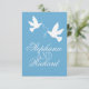 Två vita love birds blå bröllop OSA Kort