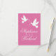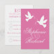 Enkelt 2 vita kärleksfåglar/dubblor med rosa rosett band bröllop OSA. Anpassa med din egen information.