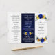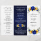Elegant och modernt landsbyggsbröllop trefaldigt programkort har en ljusstark gult solros, Royal blå ponnyer, baby andedräkt, gipsophila blommigt ram / andedräkt med eukalyptus löv. Hitta fler matchande utformningar och variationer från min "blissweddingpaperie"-butik. Och kontakta mig gärna för ytterligare anpassning eller matchning av objekt.