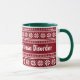 OCD Tvångsmässig julstörning mugg. Personlig ful jultröja mönster 11oz mugg för kaffe, te eller varm choklad. Rolig jul presentidé för trendiga män, kvinnor och barn. Röd och grön eller anpassade bakgrundsfärger. Söt mysig nordisk stickningsdesign dryckeskärl för hemmet eller kontoret. Finns även som stor överdimensionerad kopp och stor resemugg. Lägg till namn, monogram, årstids hälsningar eller rolig citat. God Jul! Stilig snö typografi bokstäver.
