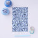 En tvål som omger lakan med en abstrakt blå checkar mönster.