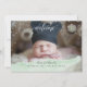 Tvärandade, tvärandade små stjärnor, med mintgrön akvarellöverdrag. Välkommen nybebis-foton födelseannons och bebisdopp-gåvor tack-kort, allt i ett.