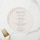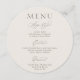 Förhöj din dukning med detta eleganta runda menykort för bröllop, med en raffinerad minimalistisk framsida och ett mjukt dekorativt mönster på baksidan. Utformat i en varm elfenbensfärg med delikat skrivstil och modern serif-typografi, förenar detta stycke tidlös sofistikation med subtil konstnärlig detalj.