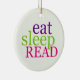 Tvåsidigt äta, sova, LÄS - Retro Julgransprydnad Keramik