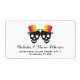 Två skallar groomar gay bröllop-etiketten med döskallarna från två stam med hattar i regnbåge färg mot vit bakgrund.
