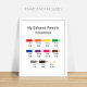 Denna affisch är inte bara utformad för klassrum och dekorering av barnrum, den är också för utbildning med 2 språk. Med den mycket grundläggande färgen kommer dina barn att kunna känna igen skillnaden mellan färger och lära sig lätt. Inte bara kinesiska och engelska, du kan ändra det till vilket språk du vill genom att redigera det i personaliseringsrutan. Om ditt språk inte känns igen av teckensnittet, klicka på "Redigera med hjälp av Designverktyg" och byt till teckensnitt för dina språk.