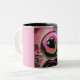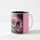 En abstrakt marmorerad design fylld med rosa, guld och svarta färger täcker denna Tvåtons mugg.