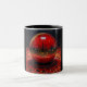 En gnistrande röd, guld och svart marmorerad design täcker tvåtons 11oz mugg.