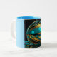 En livfull marmorerad design fylld med färgglada band av turkos och guld täcker denna tvåtons-mugg.