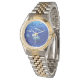 Kvinnans klassiska handklocka visas i guld och silver med två ton. Har en fantastisk bild av hajar i djuphavsområdet. Söt andra handen. Anpassa den här klockan eller köp som det är.