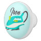 En söt, teal och kalkgrön, tvätt järn med blek teal bakgrund. "Järn" överst.