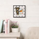 En klocka med en monogramstart. Designad med en söt illustration av en tecknad brunbjörn som håller en daisy av gulten. Omringad av en dekorativ blommigt med blommor, löv, sprit och hjärtan. Ordningen för hösten färg.