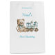 Cute All ombord på en firande-fullt av glädje och ! Vänner och familj från inbjudan till din lilla födelsedag med vår berömvärda Pojke First Birthday Gift Bag. Den här charmerande designen har en söt nalle som fungerar som den gladlystna, A Blue tåg med en Teddybjörn sitta i tåg som ger ett lekfullt och nostalgiskt drag till ditt barns speciella dag.