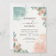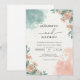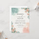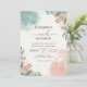 Tvättad korall- och tealblomsterbåge bröllop inbjudningar