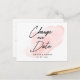 rosa vattenfärg tvättar med handskrivet "ändra datum" för bröllop-fördröjningen.