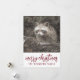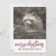 Tvättbjörn i vintersnö, julkort. Lägg till ditt efternamn. Skogsstil.
