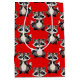 Sött litet tecknat tvättbjörn-mönster på röd bakgrund