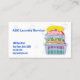 Visitkorten för den tjänste- tvätten, tvättinrättning, hushållning, Etc.-design presenterar tvättkorgen fyllda vikta tvätten. När du flyter såpbubblan betonar repetitioner på baksidaen av card.created med diagramby© http://www.delightful-doodles.com/