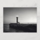 Det svarta och vita fotot visar fyr i solnedgången, Mallorca, Spanien.
