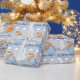 Detta gulliga tvilling- blonda pojkar - Storkbaby shower som slår in papper, presenterar en blått- och vitlutningbakgrund, moln och en stork som bär tvilling- pojkar. Pojkarna har blont hår och nappar i en blåttfilt med vitpolka dots. Stylized text är det är tvilling- pojkar. Perfekt för inpackning av baby showergåvor. Välj ditt massmedia och format av inpackning av papper.