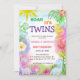 Tvilling Dinosaurie Blommig Grönska Babyflicka Sho Inbjudningar