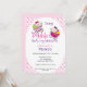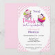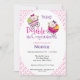 Det är tvilling flickebarn. Bedårande tvilling bebis badrums inbjudan med två leende bebis flickor i två barnvagnar.