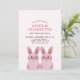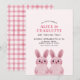 Söta kanintema för en tvillings systers födelsedagsfest med två rosa kaninungar som bär rosa glasögon. NI KAN TA BORT GLASÖGONEN! Baksida med rutigt mönster.