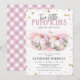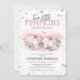 Tvillingflickor pumpa baby shower inbjudningar med en enkel vit bakgrund, söta rosa akvarellpumpor, fjärilar, blommor, eukalyptus, guld- och rosa stjärnor, och en modern tvilling baby shower mall som är lätt att anpassa.