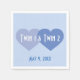 Den här fina dockan har intilliggande hjärtan i olika nyanser av blått och malltext för datumet för ett särskilt tillfälle. Utformningen är perfekt för en barndusch, baptism eller födelsedagsfest. Bilden av det dubbla hjärtat passar också för förlovningsfest, bröllop, möhippa eller årsdag firande.