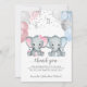 Låt dina gäster få veta hur tacksamma du är för denna vackra babydusch tack vare ditt kort med dubbla blått och rosa grått baby elefanter med ballonger och konetti. Baksidan har mjuk grått-vattenfärg. Anpassa enkelt genom att klicka på Anpassa.