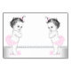 Tvillingflicka baby shower bordskort med söta små flickor som bär rosa rufflade byxor, tofflor och slingor på en vacker diamantbakgrund. Dessa söta flicka baby shower bordskort kan enkelt anpassas för ditt evenemang genom att helt enkelt lägga till din text, eller lämna tomt för att lägga till din handskrivna text när de anländer. Detta är en tryckt design utan riktiga ädelstenar, band, slingor etc.