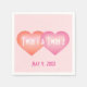 Den här tvillinghjärtan - perfekt för en tvillingflickors babydusch, baptism eller födelsedag - har ett laxhjärta och ett rosa hjärta, var och en med ett vitt tvättat centrum, som täcks av en textmall för barn namn. Bilden av det dubbla hjärtat passar också för förlovningsfester, bröllop, möhippor och firande på årsdagen.