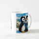 Tvillingpingviner lycklig fötter, brunt kaffe te m kaffemugg