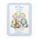 Snygg blå och grön akvarell baby shower Spara datum-magnet för tvillingpojkar. Snygga akvarell-tvillingpojkar med en blå ballong och teddybjörn.