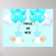 Tvillingpojkar baby shower eller könsbestämningsfest dekoration. Lägg till text för att anpassa.