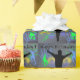 Denna presenterar den gulliga Tweenpojke födelsedagen för födelsedagsfest som slår in papper, en mörk kollutningbakgrund, stylized textgrattis på födelsedagen! , en Silhouette av en tweenpojkebanhoppning, skateboarders, BMX-cyklar, fyrverkerier och färgrika splats. Perfekt för inpackning av födelsedagdaggåvor. Välj ditt massmedia och format av inpackning av papper.
