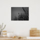 Den här poster en ensam fågel på träd gren mot skylten i svartvitt