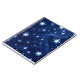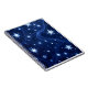 night sky filled with glowing stars and snowflakes in various sizes and styles. Set against a deep blue backdrop, the bright white and icy blue elements create a striking contrast. Wispy, wave-like light trails weave through the composition, adding motion and depth. The overall effect is magical and wintery—evoking a sense of wonder, serenity, and seasonal charm.