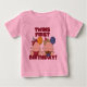 Twillingarnas första födelsedag T-tröjor, kroppsdräkter, kort, poster, keepsakes och fler fylliga twillingar i party, hårkors, ballonger och text som lyder "Twillingar första födelsedag!".