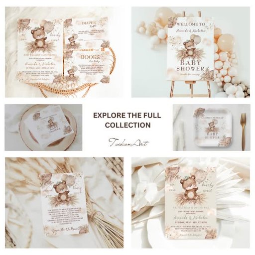 Denna söta, gender-neutralt, nalle-temade babyduschinbjudan innehåller en blandning av vintagens rustika accenter i varmt pastel färg som beige, elfenben, grönt och brunt. En hedervärd nalle, moln, pampasgräs, handflatan löv och blommor skapar en mysigt och inbjudande atmosfär. Glöm inte att utforska fullt!