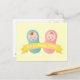 Meddela att du förväntar dig twillingar till din familj och vänner med detta söta pojke och den söta flickan som är insvepta i blått respektive rosa buntar. Vit text på gultens banderoll lyder: "Vi har Twillingar!" Bakgrunden kan ändras till valfri färg i anpassningsläget.