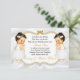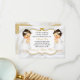 Vackert flicka i sin dödande klänning och guld kor halsband. Inbjudan har sin bakgrund i vit satäng med guld och silver glitter ram och förskönande av buken. Baksidan är försedd med guld-blomman mönster & guld på en vit satinbakgrund.