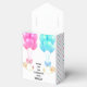 Twillingar duschar party favors i söta pinkar och blues. Så här anpassar du redigeringstexten för att lägga till namn.