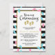 Kallnamnsceremonin för tvillingtrafik syskon med fotavtryck i guld, rosa och blått spridda över en svart och vit strimlad bakgrund. Namngivningsceremonin skrivs i ett charmerande skript. Lägg till dina twillingars namn och namnceremonins detaljer.