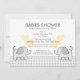 Söt, elefant-babyduschinbjudan med en grått-gingham-check mönster och gult-hjärtan.