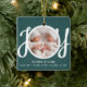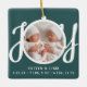 Den här söta Twillingarna Namn Birth Stats jul Photo Ornament dekoreras med ord JOY i snyggt skripttypografi på gröntens bakgrund. Anpassade enkelt med ditt foto, namn och baby födelsestatus.