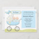 Inbjudangäster till en twillingarbaby shower med denna förtjusande inbjudan för blåttbarnvagnbaby shower. Några inslag vid den www.nitwitcollections.com licensen #41088. Detta gulliga blåttkort presenterar en förtjusande pojke i en barnvagn.