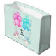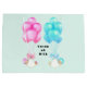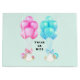 Kreativ baby twillingar presentväska med rosa och blå ballonger och söt twin-flicka och pojke spädbarn.