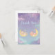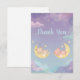 Express gratitude to your baby shower guests with this sweet matching thank you card featuring adorable cartoon baby animals sleeping in crescent moons. The dreamy starry night design with twinkling stars and fluffy clouds in soft purple and mint green perfectly coordinates with your twin baby shower theme.
